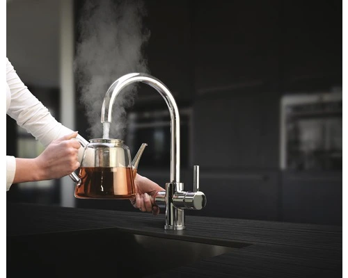 De Hotto biedt je ongekend gemak in de keuken. ‘Wachten tot het water eindelijk kookt’ behoort voorgoed tot het verleden. Stel je eens voor wat voor tijd je dit bespaart! Maak dan nu kennis met de Hotto: een 3-in-1-kraan die je naast koud en warm water, ook kokend water levert.
