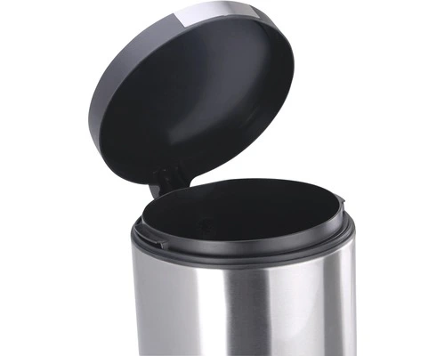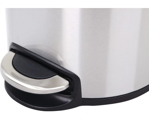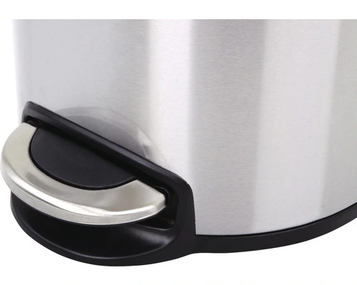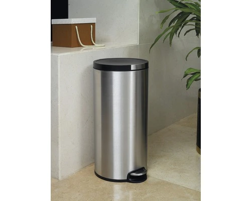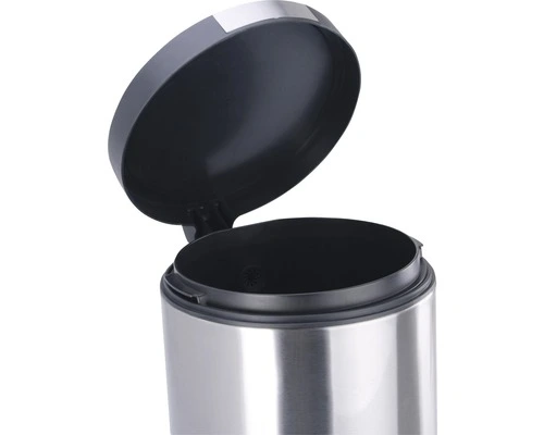 Ronde pedaalemmer met kunststof deksel met RVS accenten. Voorzien van kunststof binnenemmer en gedempt sluitend deksel.