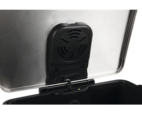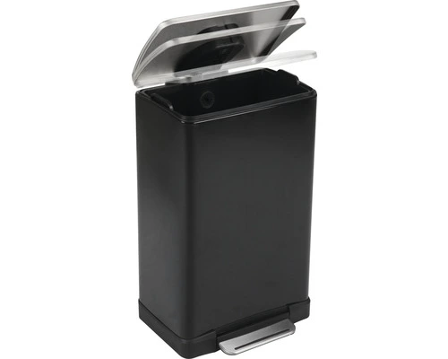 De stijlvolle EKO pedaalemmer in het zwart is voorzien van een extra breed pedaal en een kunststof binnenemmer die een inhoud heeft van 40 liter. De pedaalemmer heeft een gedempt deksel en stay-open functie. De pedaalemmer is Fingerprint-proof en aan de binnenzijde van het deksel is er ruimte voor een carbonfilter tegen geurtjes.