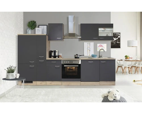 Flex-Well FLEX WELL Keukenblok Met Apparatuur Tiago Basaltgrijs Mat 310×60 Cm