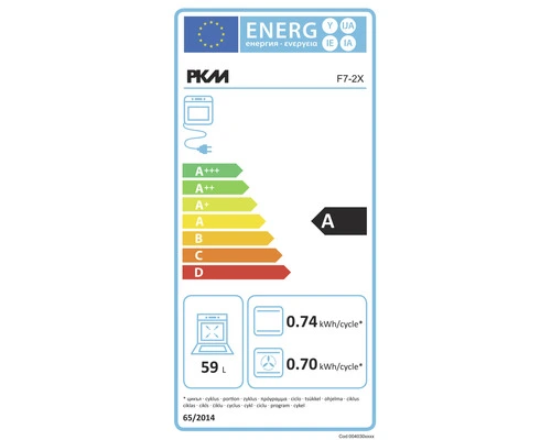 | Omschrijving bakoven | PKM inbouwoven F7-2X, inbouwoven met RVS paneel, met 7 functies, behuizingskoeling, zie technisch gegevensblad voor verdere details |