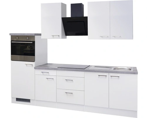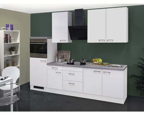 Drie 89 cm hoge bovenkasten met elk 2 legplanken bieden meteen genoeg plek voor serviesgoed en glazen. In de 50 cm brede onderkast met lade en draaideur alsmede in de 60 cm brede kookplaatkast met 2 lades vinden bestek, potten en pannen en/of voorraden een plekje. Ook de gootsteenkast biedt nog genoeg plaats voor het bewaren van allerlei keukenbenodigdheden en poetsspullen. En mocht het nodig zijn, dan kun je je keuken gemakkelijk uitbreiden met extra kasten uit de gelijknamige serie. Bijzonder praktisch is de ombouwkast met verhoogde ovennis en daaronder de 88 cm hoge koelkastnis.