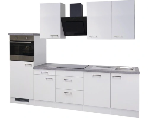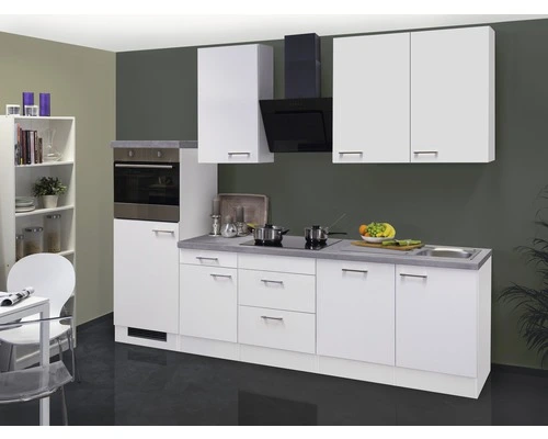 Drie 89 cm hoge bovenkasten met elk 2 legplanken bieden meteen genoeg plek voor serviesgoed en glazen. In de 50 cm brede onderkast met lade en draaideur alsmede in de 60 cm brede kookplaatkast met 2 lades vinden bestek, potten en pannen en/of voorraden een plekje. Ook de gootsteenkast biedt nog genoeg plaats voor het bewaren van allerlei keukenbenodigdheden en poetsspullen. En mocht het nodig zijn, dan kun je je keuken gemakkelijk uitbreiden met extra kasten uit de gelijknamige serie. Bijzonder praktisch is de ombouwkast met verhoogde ovennis en daaronder de 88 cm hoge koelkastnis.