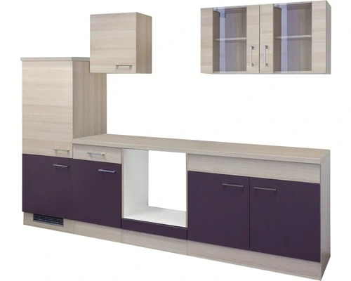 Flex-Well FLEX WELL Keukenblok Zonder Apparatuur Focus Acacia En Aubergine Mat 270×60 Cm