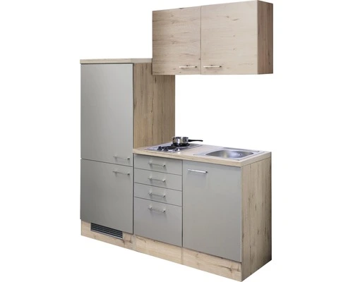 Flex-Well FLEX WELL Minikeuken Met Apparatuur Riva Kwartsiet Cubaniet En San Remo Eiken Licht Mat 160×60 Cm