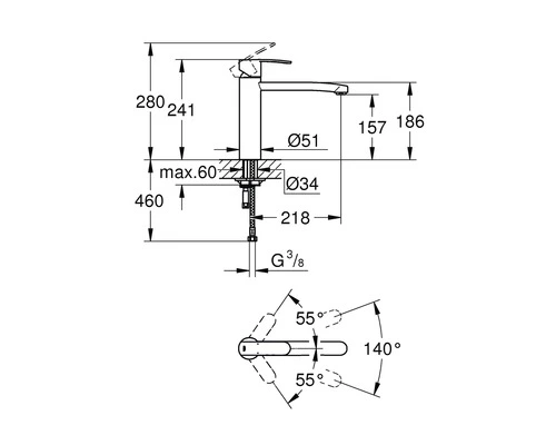 | Beschrijving | Medium uitloop, GROHE SilkMove® 35 mm keramisch patroon, GROHE QuickFix® snelle en eenvoudige montage, Flexibele aansluitslangen, Draaibare buisuitloop, Instelbare doorstroombegrenzer |